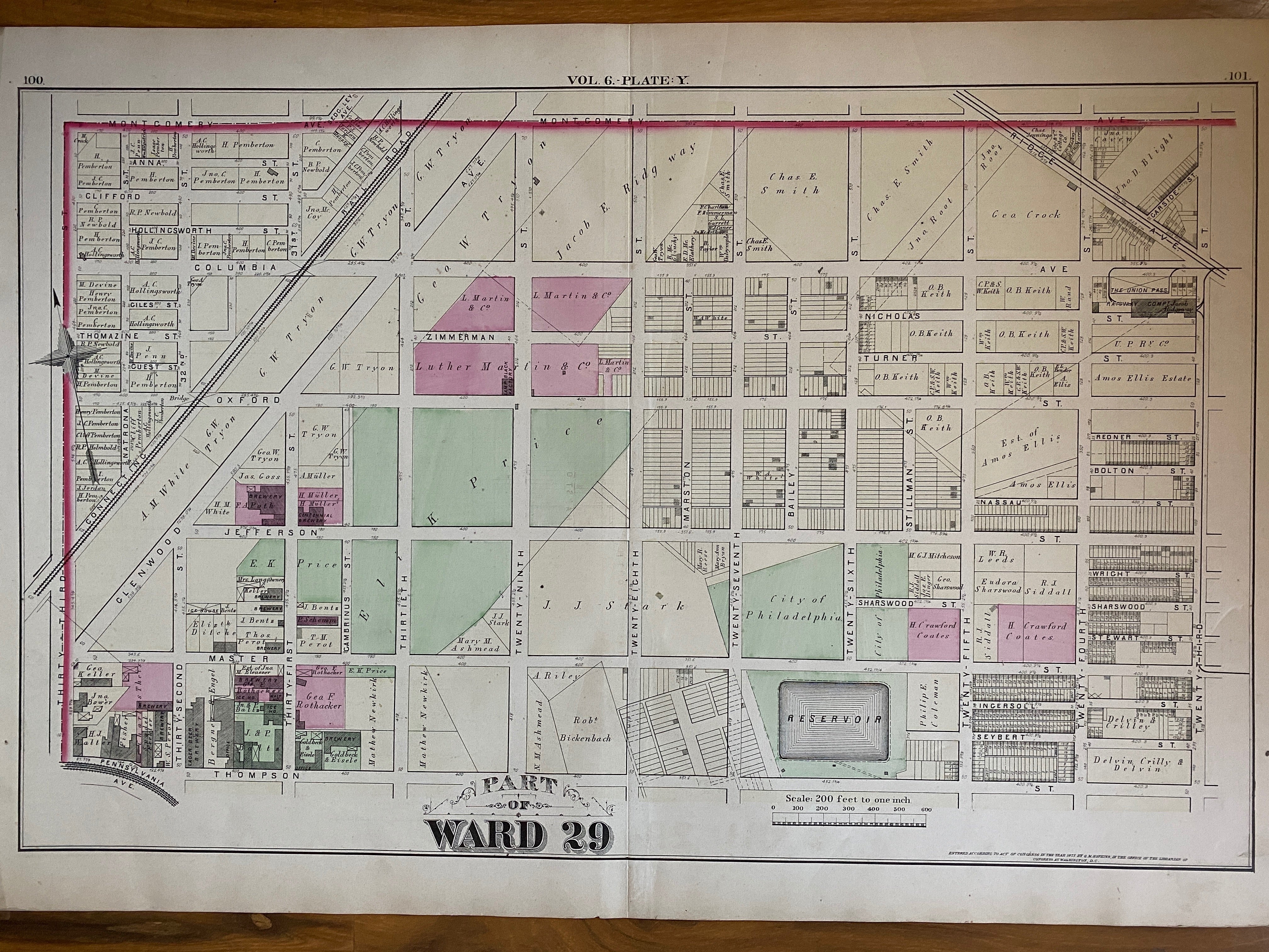 Big, beautiful and ***ORIGINAL!*** 1875 G.M. Hopkins - Ward 29 Vol 6 Plate Y